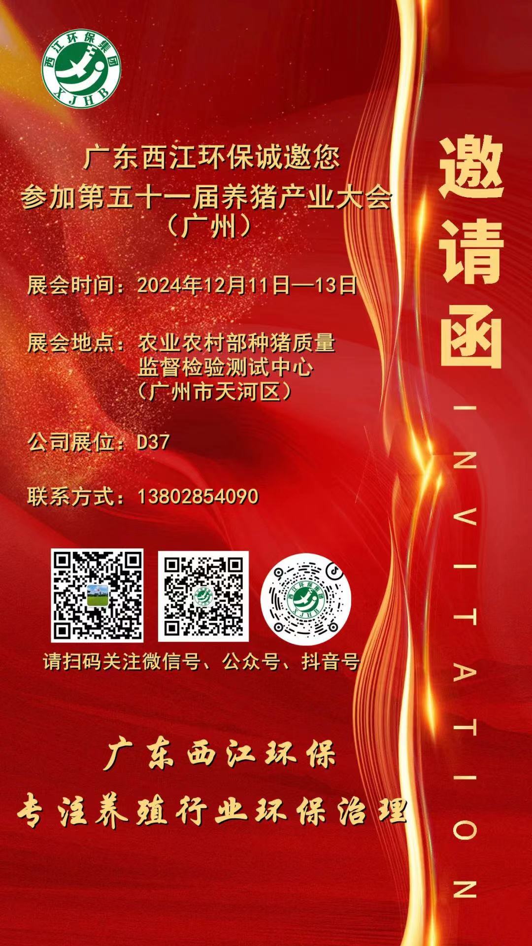 作为国内养猪业最知名的展会之一,广东西江环保诚邀大家莅临我司展位(D37)现场参观和指导。公司将展示在环保技术领域取得的最新创新成果,致力推动养殖行业的可持续发展,为养殖行业的绿色发展贡献力量。