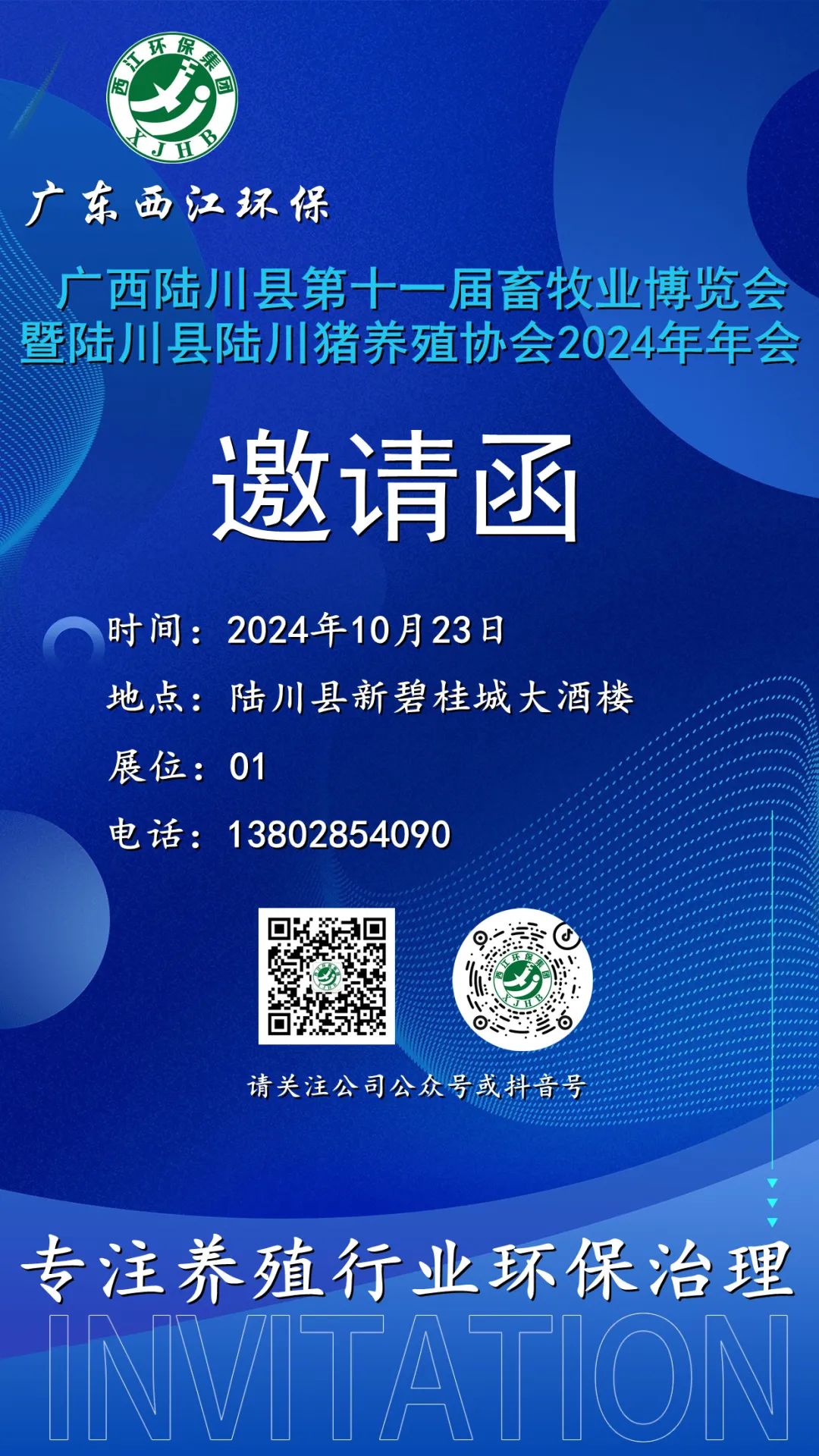 广东西江环保诚邀您共聚广西陆川县第十一届畜牧业博览会暨陆川县陆川猪养殖协会2024年年会